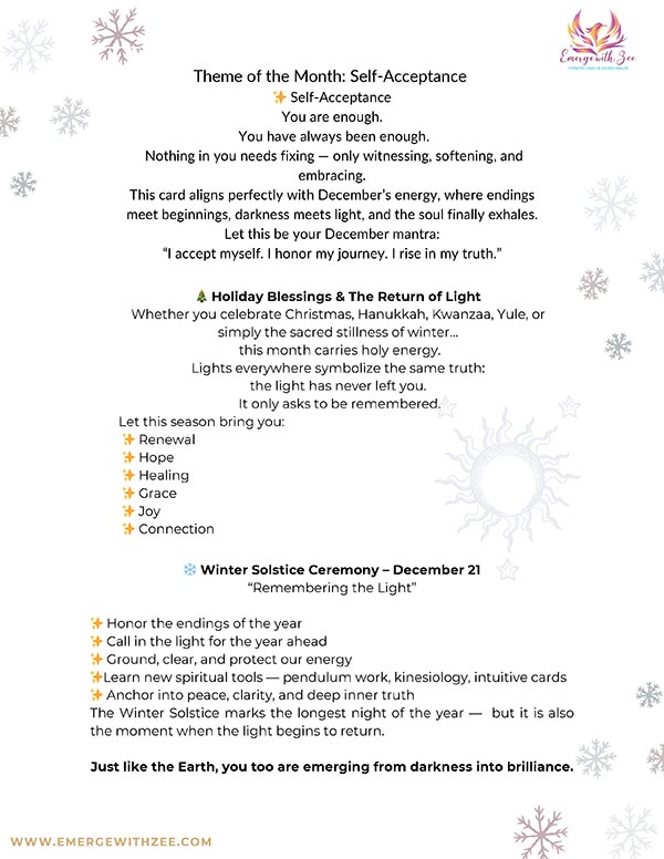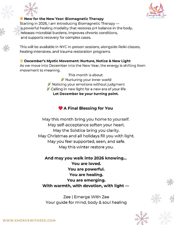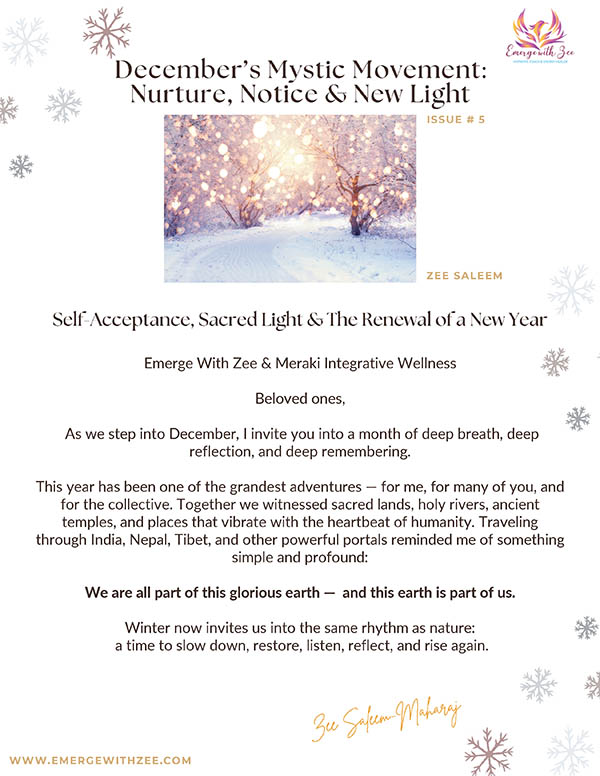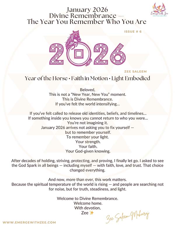 Here you’ll find past issues filled with inspiration, energy updates, mindful practices, and soulful guidance from Zee. Each newsletter is designed to help you realign with your purpose, nurture your spiritual growth, and emerge more grounded, radiant, and empowered in your daily life.